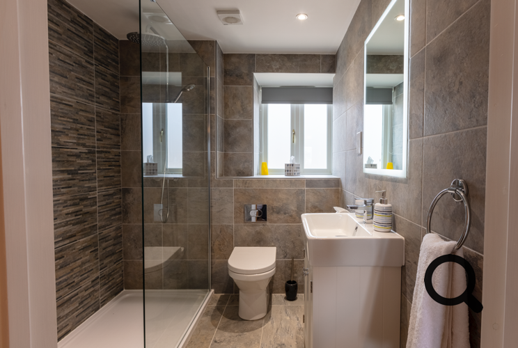Inside the décor perfectly matches the surroundings, showcasing the original beams and retaining much of the character and the open plan living area is bathed in natural light. The country style kitchen is stocked with everything you need to make delicious home cooked meals and with deep, comfortable sofas and a traditional wood burner, this is the perfect place to sit and relax after a long day exploring the local area. The patio doors are south facing and lead out onto an enclosed terrace, with far reaching views across open countryside. A great place to enjoy al fresco dining at any time of the day or to enjoy one of North Yorkshire’s stunning sunsets. With natural night skies, this cottage is great for star gazers! Both bedrooms have very good quality en-suite bathrooms. There is also a utility/boot room for storing walking boots, coats and dog leads.
